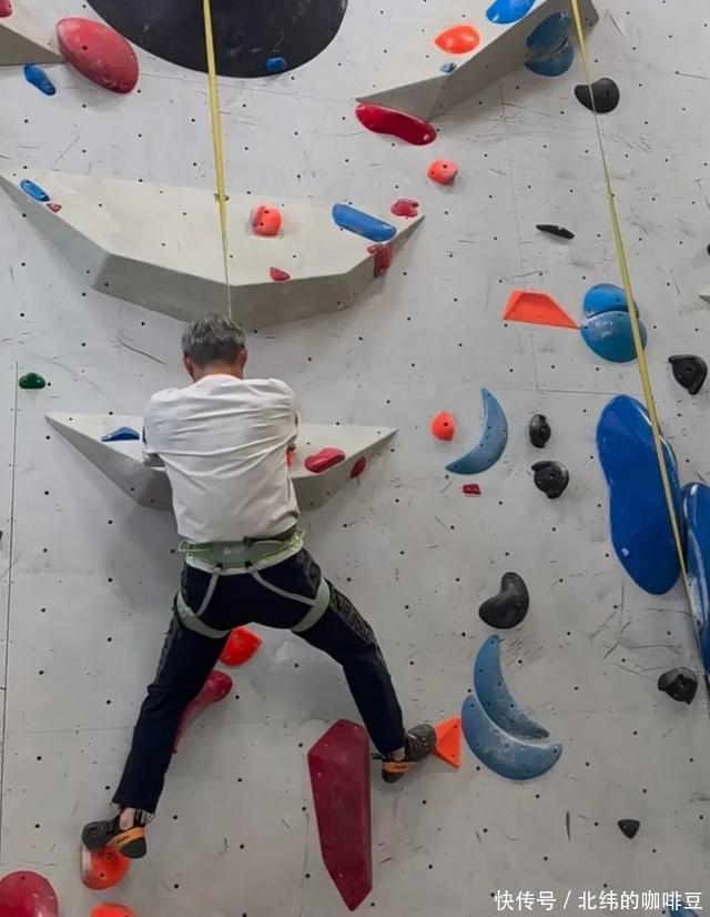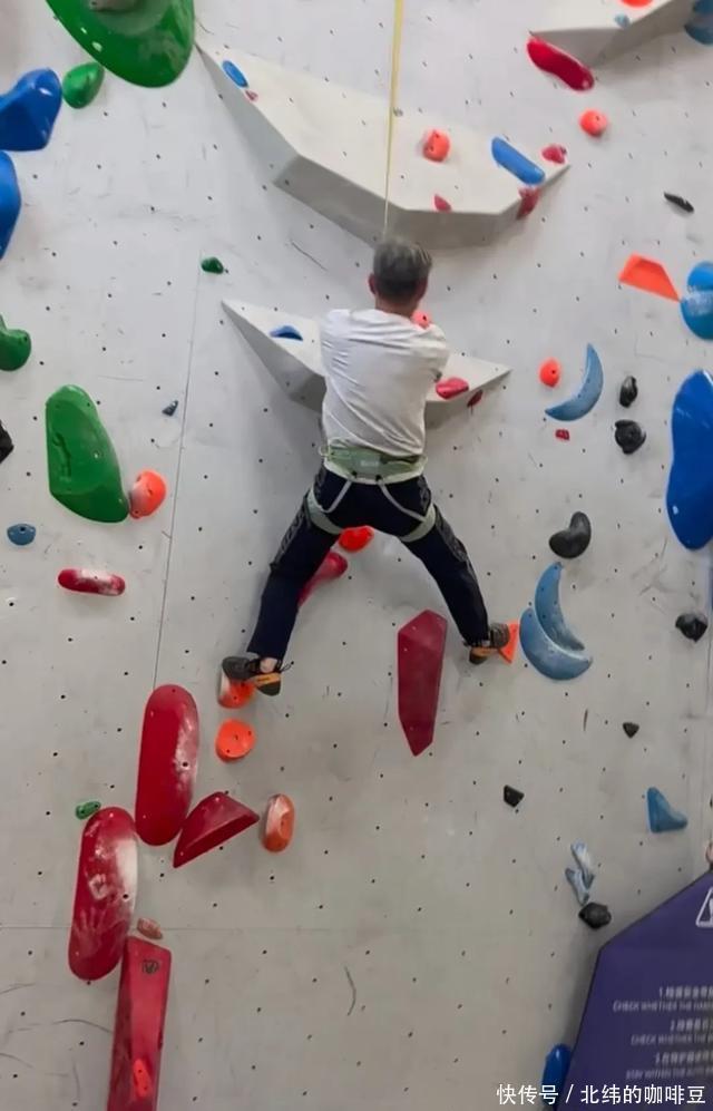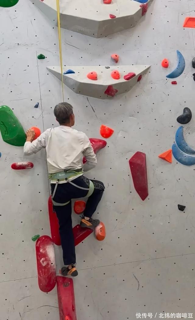 有网友晒出他攀岩的视频,新年马上就75岁的他,穿着一件白色长袖,运动裤,脚踩登山鞋,身上还挂有保护绳,在攀岩馆攀岩。 他头上戴着花白的假发,早已秃了半个脑门的他,也爱上了时髦,戴上假发,确实显得年轻好多。